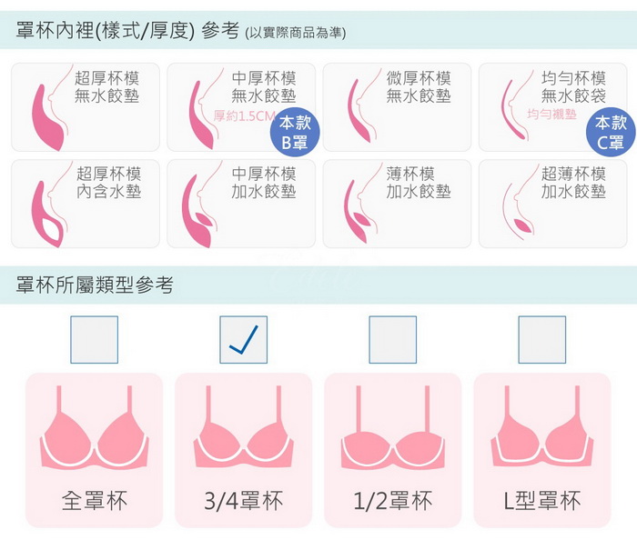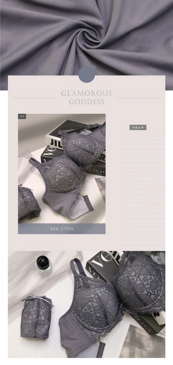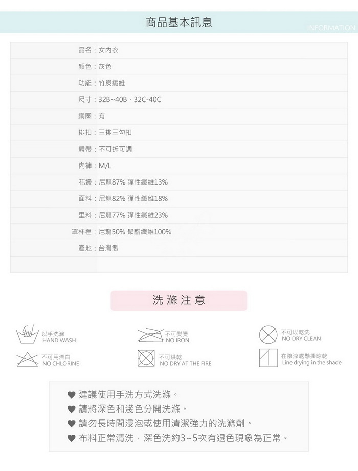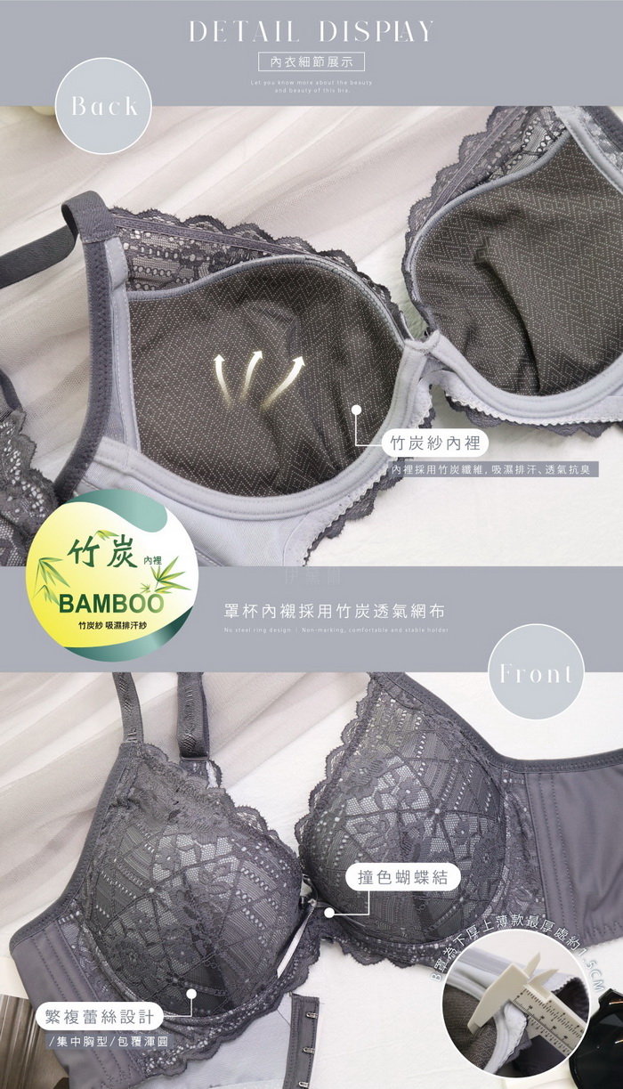 罩杯內襯採用Q軟襯墊+竹炭紗纖維