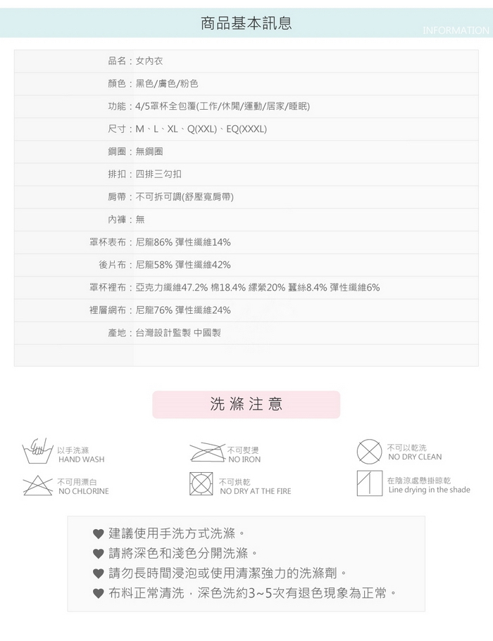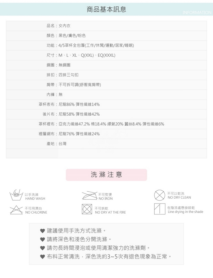 三大特點:無鋼圈/蠶絲/鎖邊布加壓