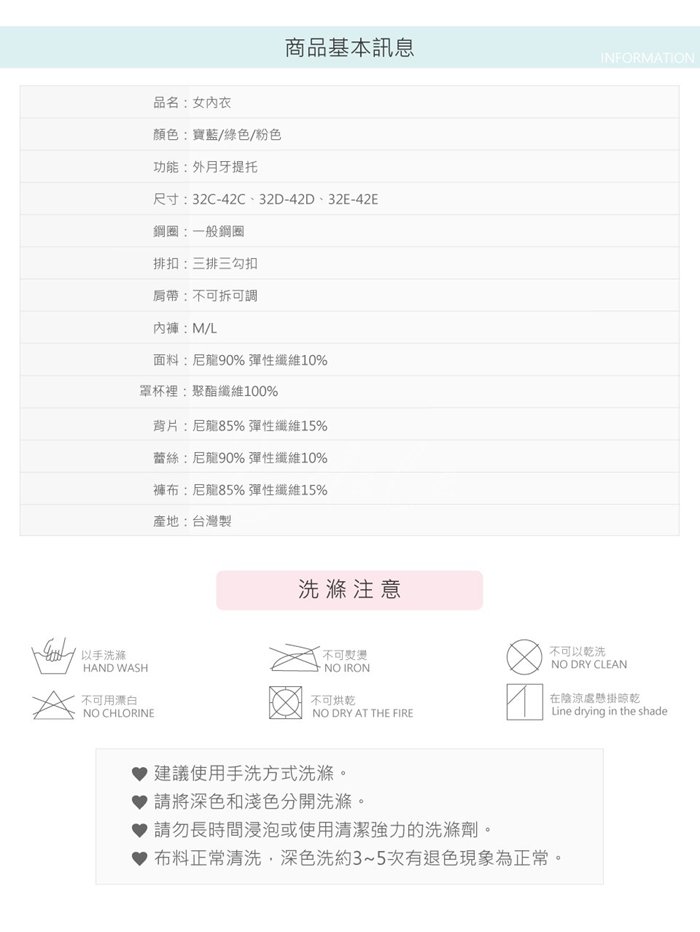 內衣【晨曦綻放】蕾絲包覆外月牙拉提機能內衣 C-E罩 (綠) #20381