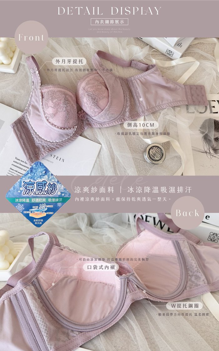 外月牙拉提設計,自然集中提托,襯托出圓潤立體的胸型曲線