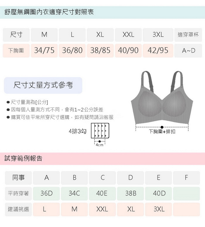 追求最高舒適度!!無鋼圈360度全面溫柔包覆。