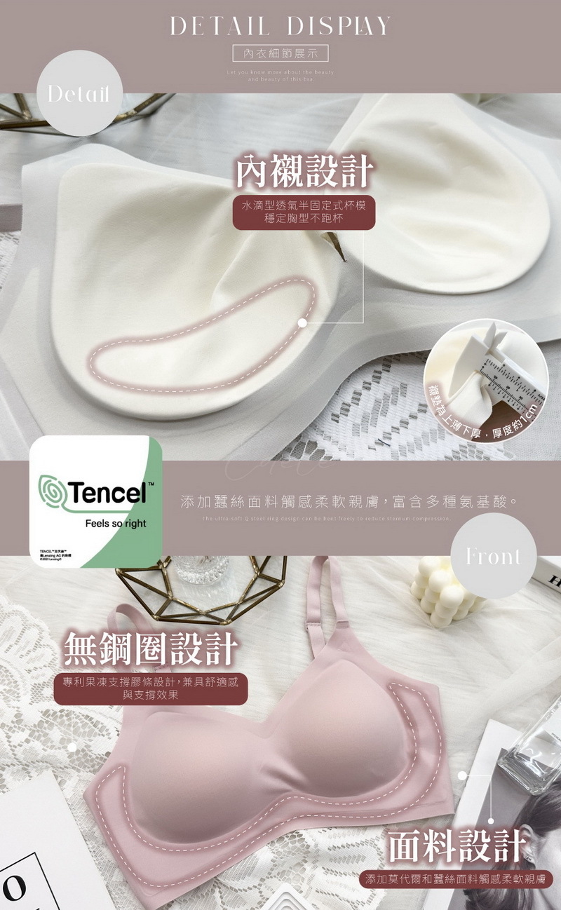 無鋼圈設計,睡眠也能輕鬆穿,零壓力、零束縛、無痕美胸
