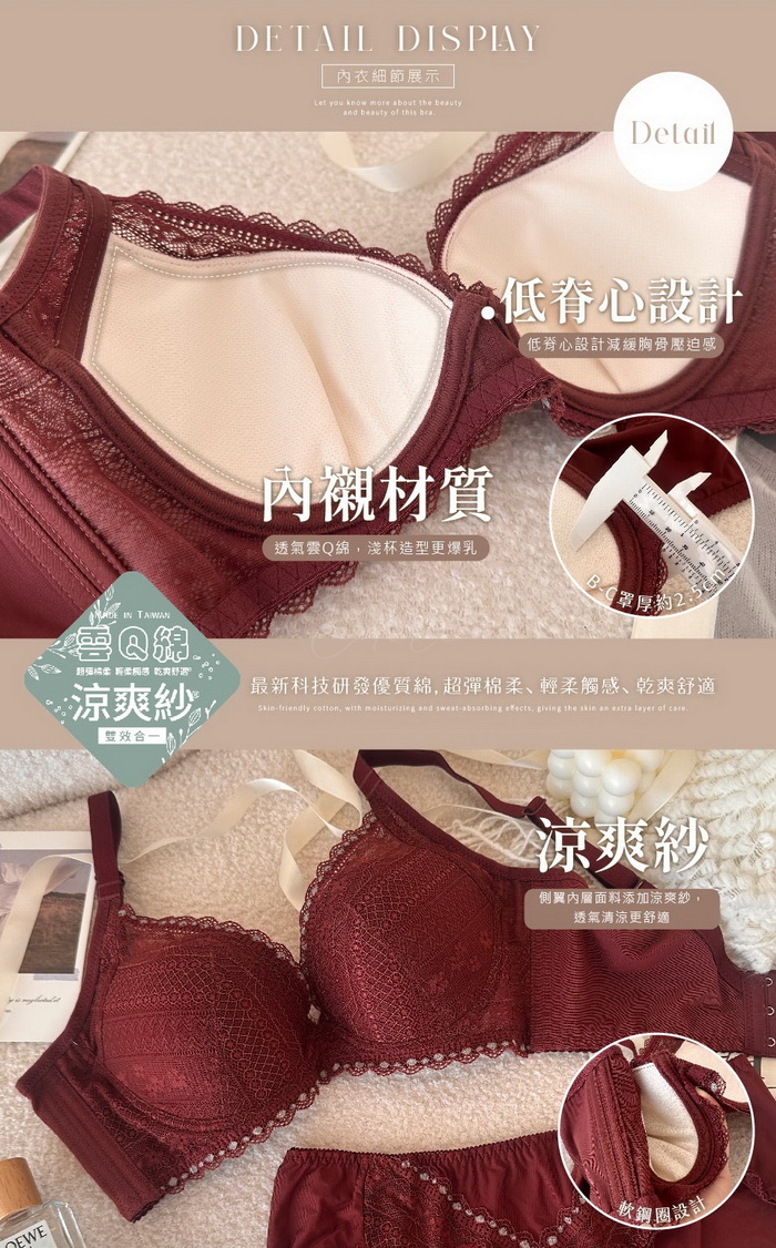 對抗天氣悶熱,穿整天內衣難受,罩杯內裡雲Q綿是採最新科技