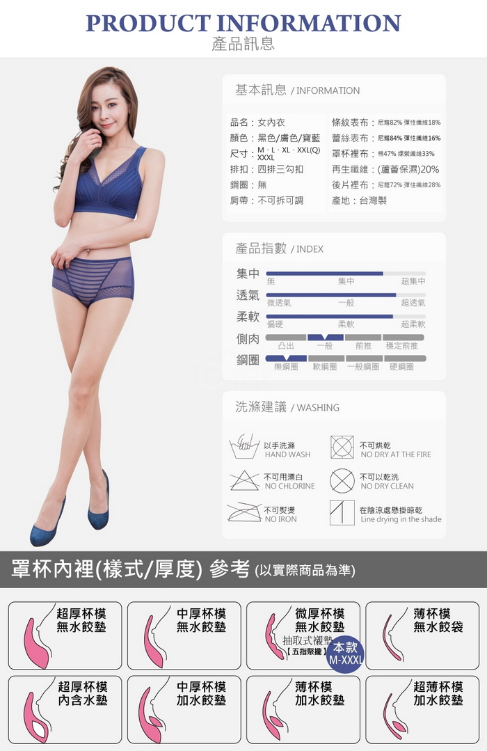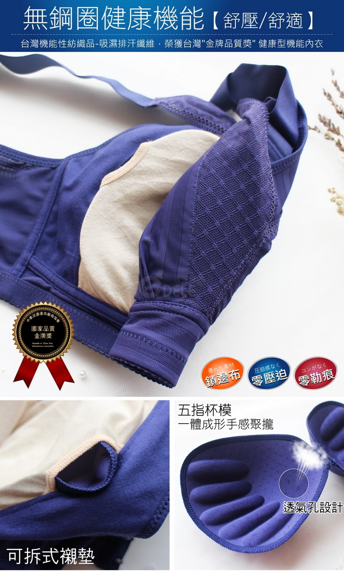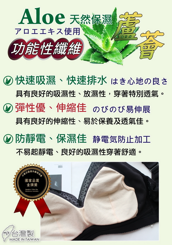 三大特點:無鋼圈/蘆薈保濕纖維/鎖邊布加壓