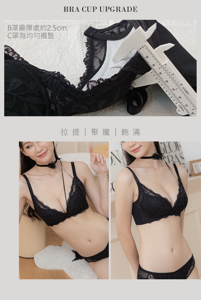 杯模浪漫動態般波紋緹花蕾絲,美胸渾圓立挺,讓視覺更加豐滿