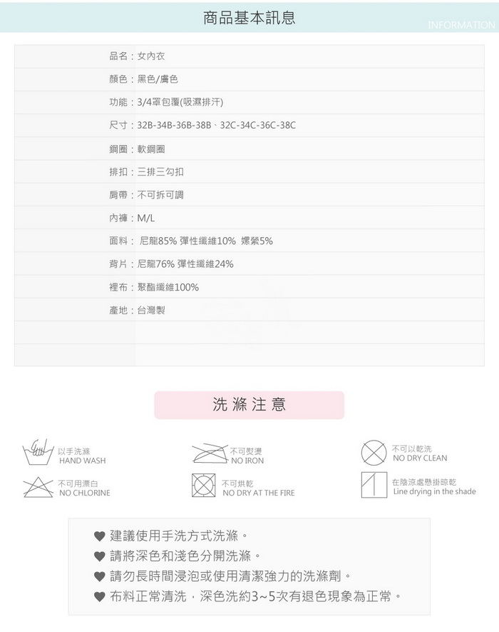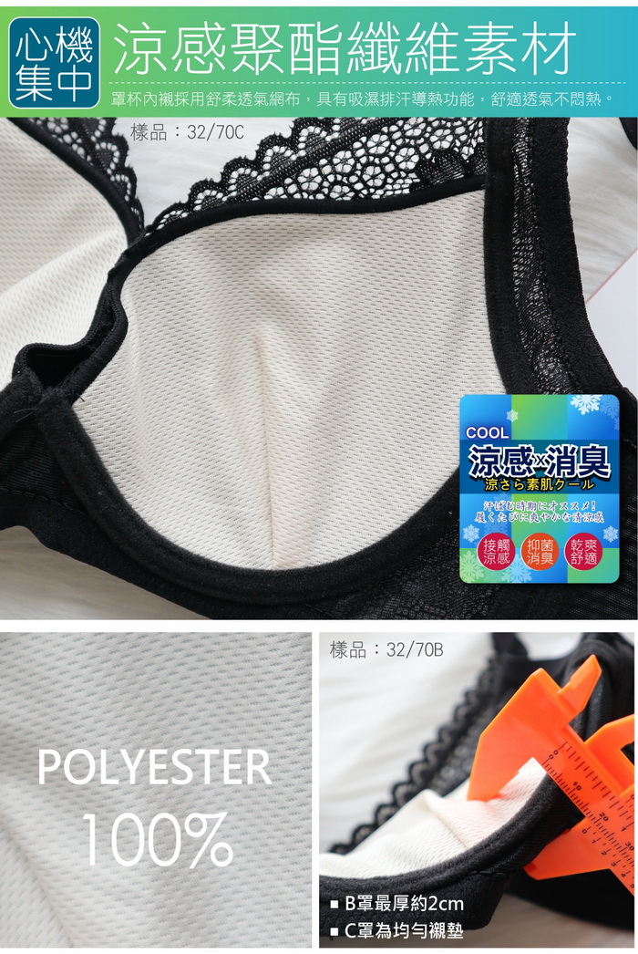 罩杯內襯採用Q軟襯墊 吸濕排汗布料,具有涼爽透氣功能,舒適不悶熱
