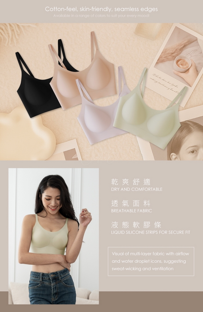 內襯水滴型透氣杯模,穩定胸型不跑杯