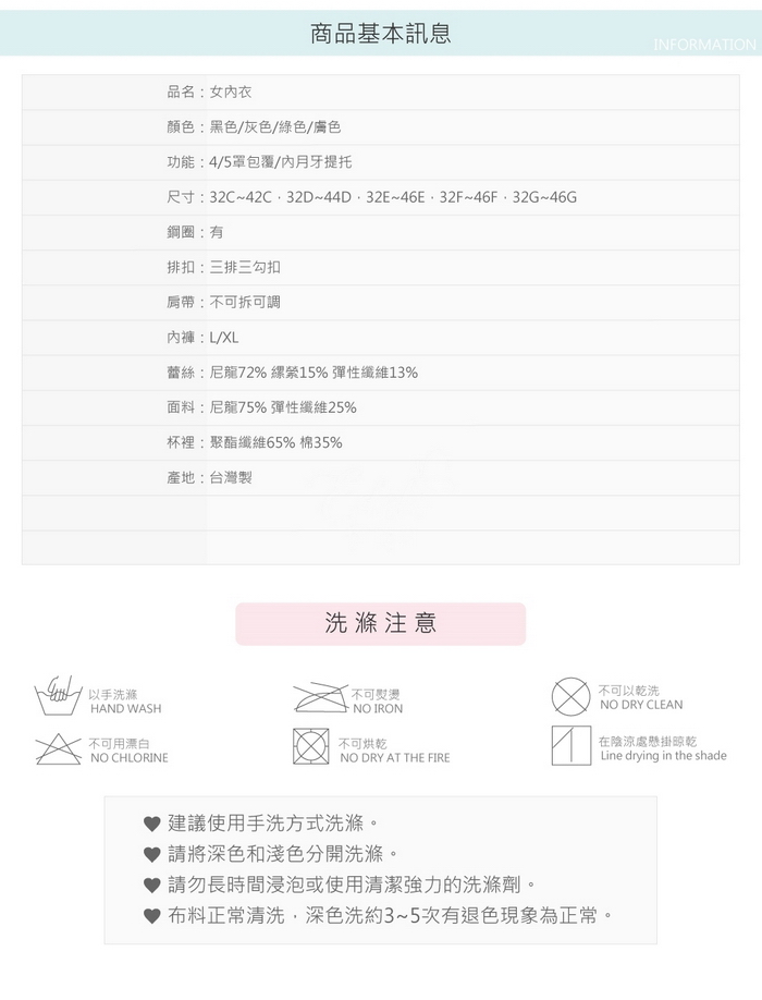 C-G罩杯都有附可拆式魔術水餃襯墊。