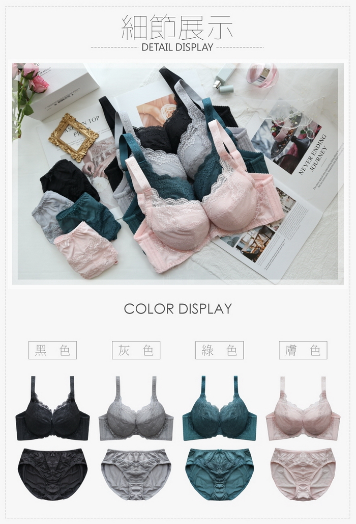 4/5罩杯上緣蕾絲設計,徹底包覆前胸,能完整貼合渾圓曲線,更加性感唷~
