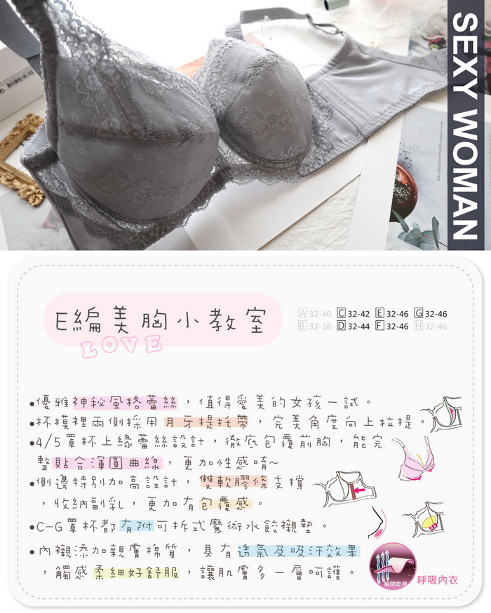 C-G罩杯都有附可拆式魔術水餃襯墊。