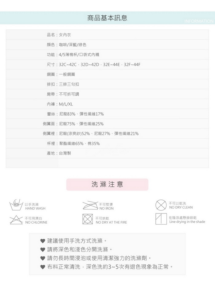 C-F罩杯都附有可拆式魔術水餃襯墊,厚度約1CM
