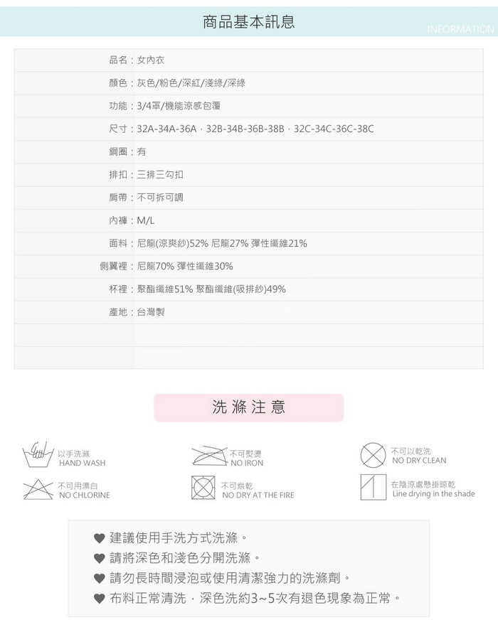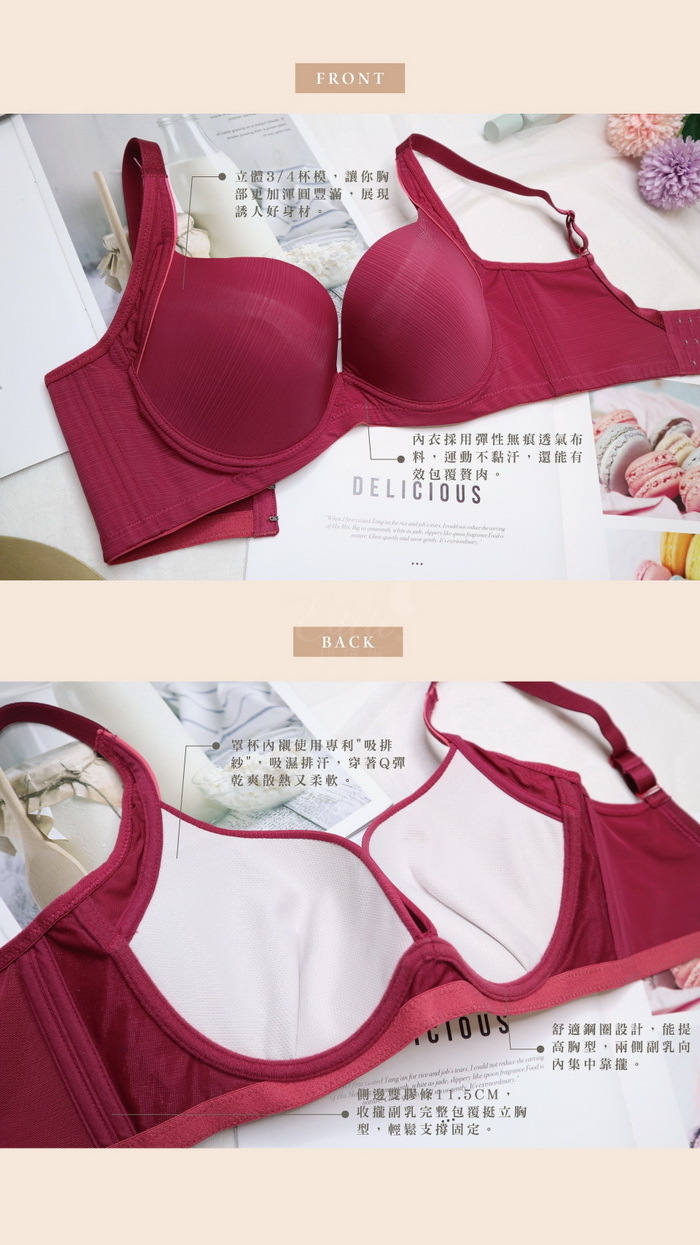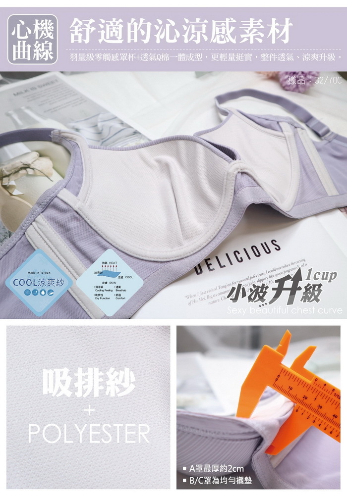 罩杯內襯使用專利"吸排紗",吸濕排汗