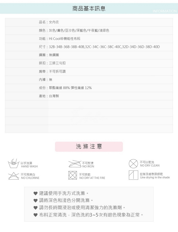 B/C/D罩內均附厚約1cm 均勻襯墊