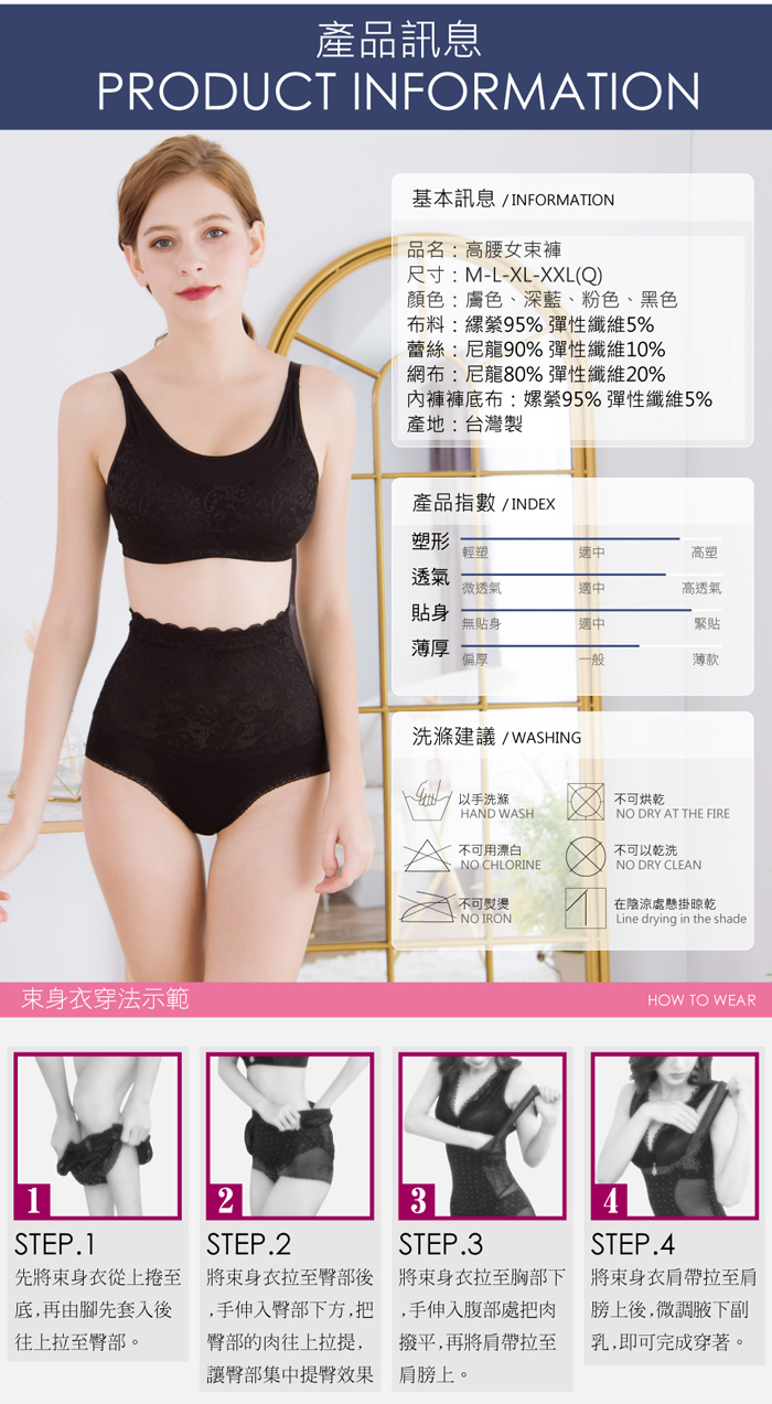 緹花精緻蕾絲,立體雕花一體成型超彈力,完美服貼每一吋肌膚