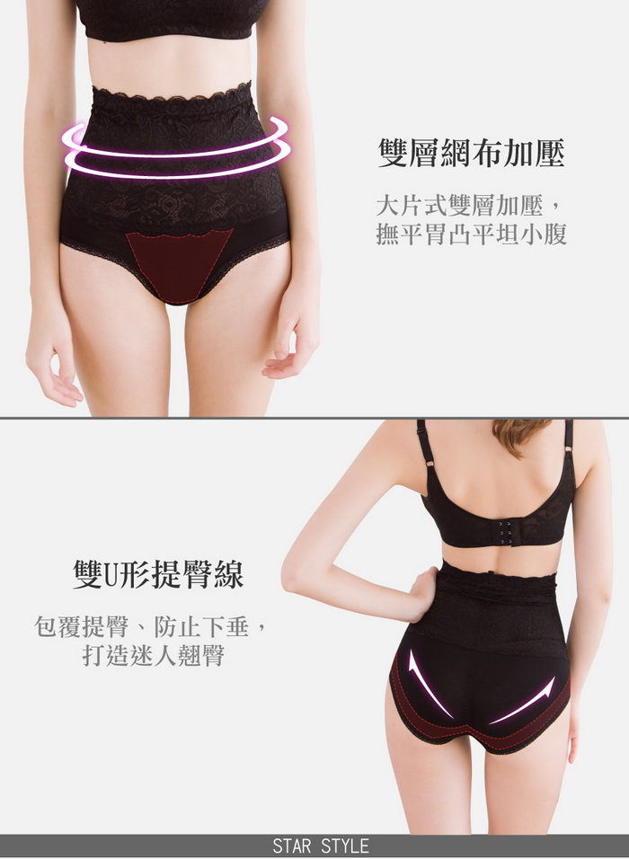 雙層加壓強化腹部曲線平整,材質透氣性佳