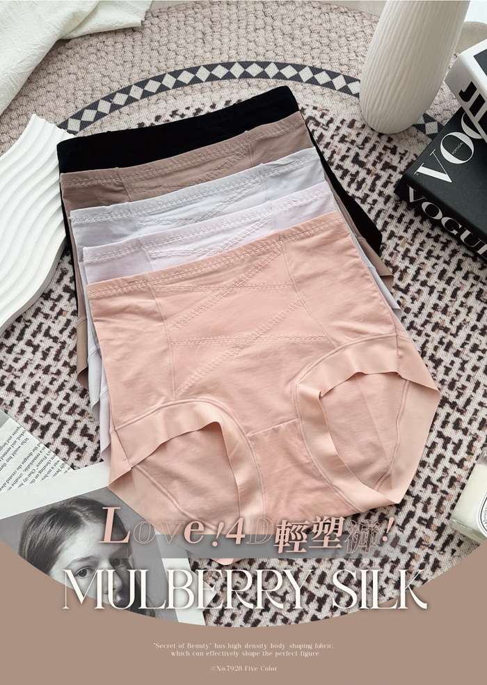 塑身褲【無痕4D輕盈】纖腰收腹桑蠶絲高腰輕塑褲*M-XXL (柑橘)#7928