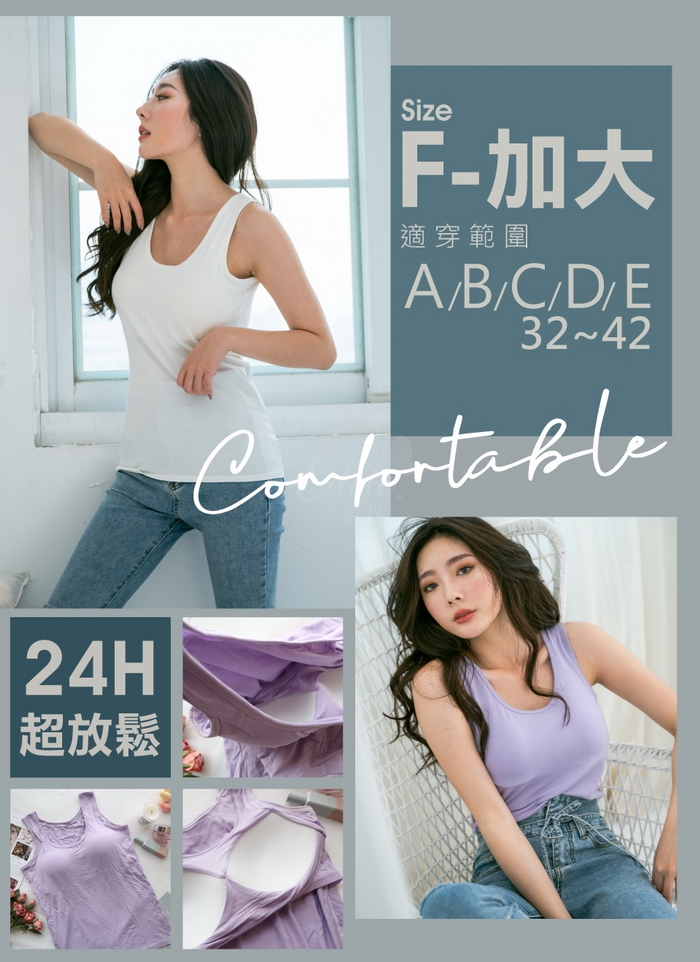 輕薄無鋼圈罩杯背心,一體成型胸墊設計,內層網布固定,完整包覆防止走光!