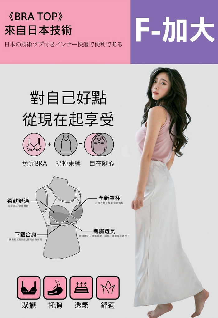 來自日本的技術 (一件抵兩件) 罩杯與內搭衣的結合 3D剪裁不空杯。