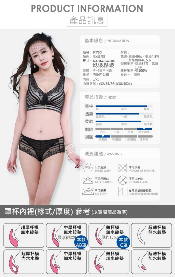 挺V浪漫滾邊薄紗蕾絲,橫條紋立體網紗,精緻宮廷吊鑽設計,塑造更誘惑的胸部曲線,展現迷人風姿