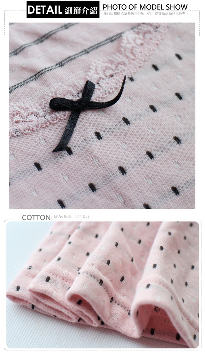 台灣製造精緻手工蕾絲,甜美圓領並添加蝴蝶結點綴,洋溢著甜美訊息。