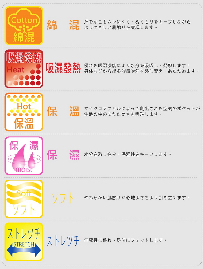 優異的吸濕機能吸收身體散發的溼氣並搭配棉貼近肌膚達成發熱恆溫效果,發熱產生的汗與溼氣,也能快速地排解出去。