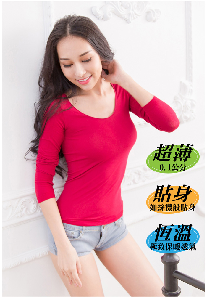 保暖衣【超薄超彈性】顯瘦9分袖恆溫保暖衣* FREE (豆沙)#999