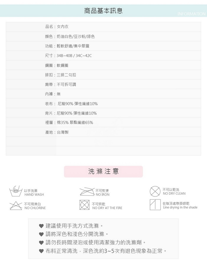 台灣製工藝絕對可以穿的很安心,親膚蕾絲完全不刺癢