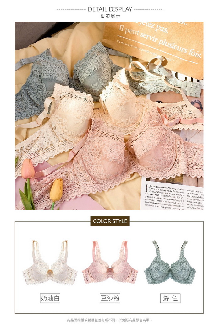 內衣【 奧麗黛拉】薄棉杯甜美蕾絲內衣 *B/C罩 (綠) #2101