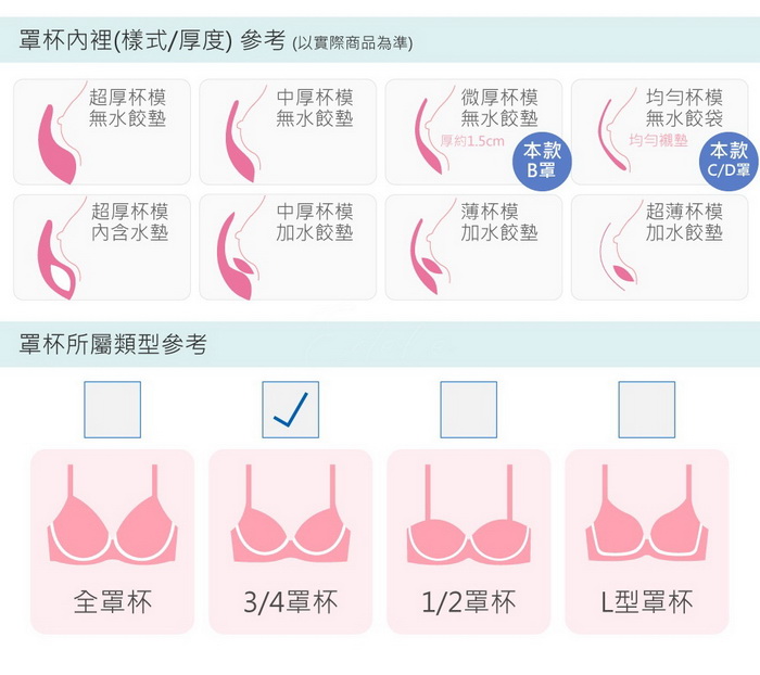 B罩約為1cm厚度,C-D罩為均勻襯墊