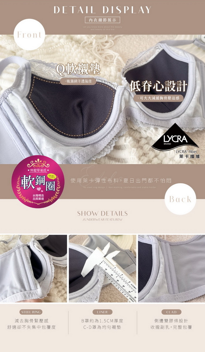 軟鋼圈設計也能深V聚攏,胸型又圓又挺
