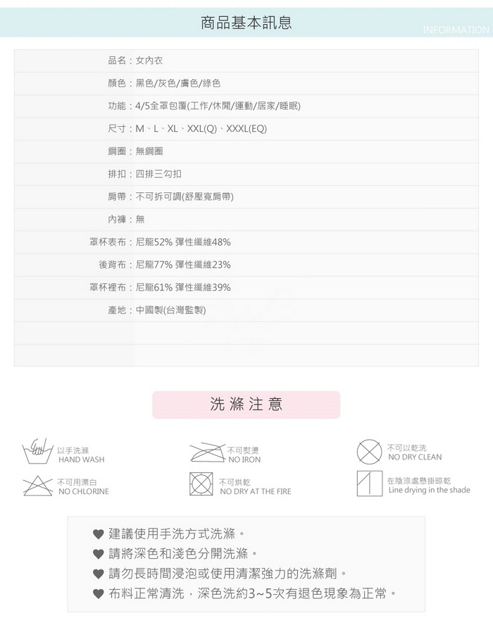 4/5全罩無鋼圈設計,讓妳在任何活動中自由伸展
