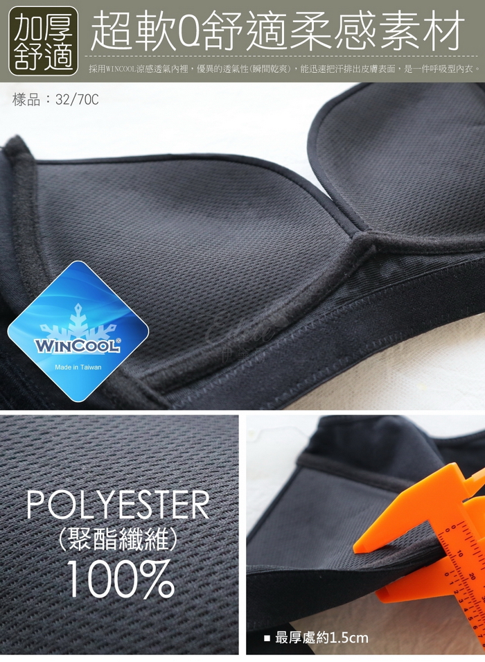 採用WINCOOL涼感透氣內裡,優異的透氣性(瞬間乾爽),能迅速把汗排出皮膚表面,是一件呼吸型內衣