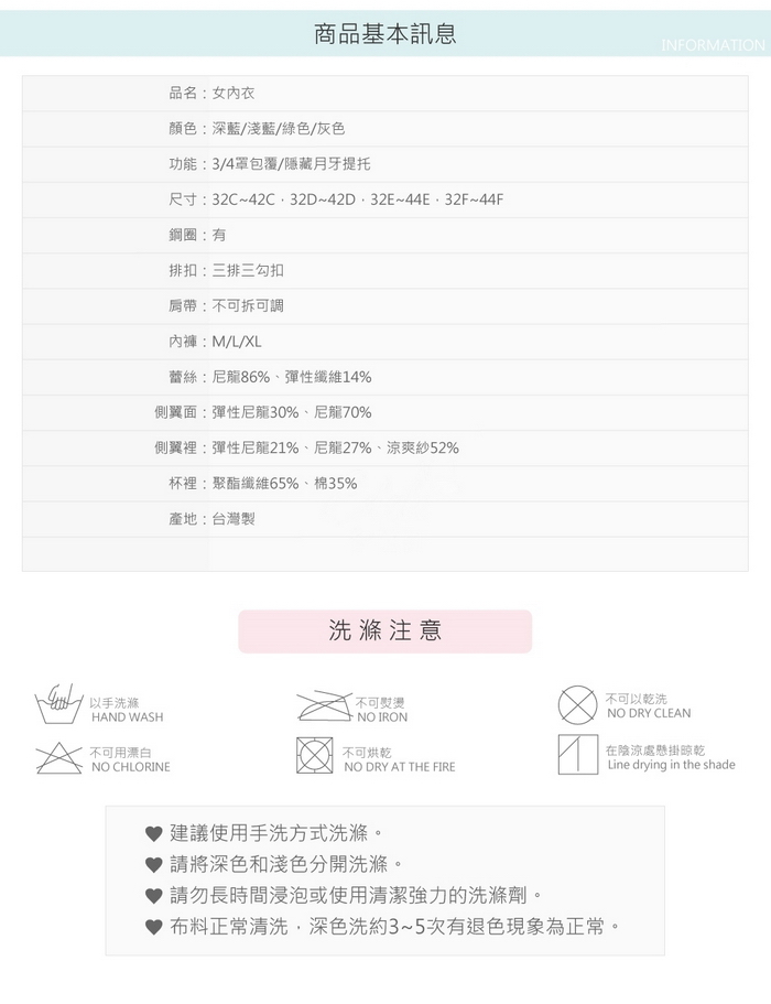 C-F罩杯都附有可拆式魔術水餃襯墊