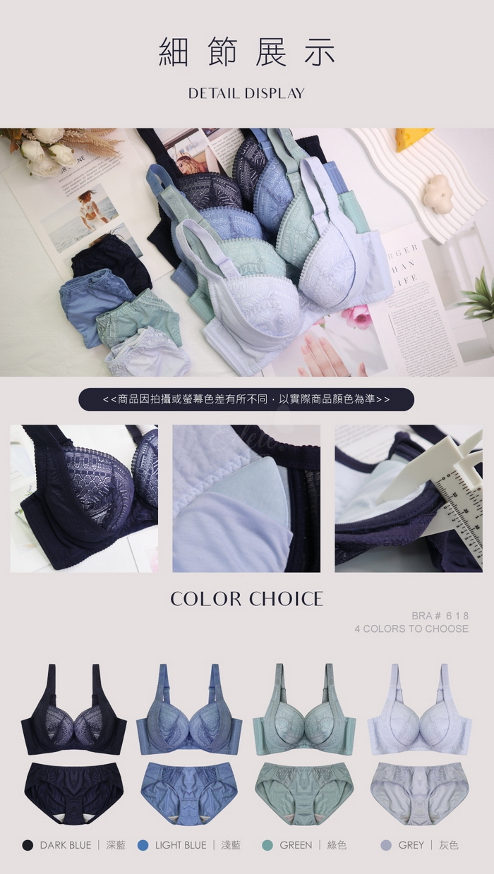 內衣【仙度瑞拉】HIDE美胸蕾絲大罩杯挺V月牙提托內衣*C-F罩 32-44 (綠色)#3618