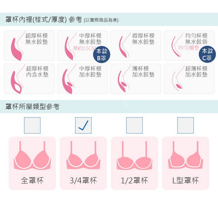 B罩-為下厚上薄罩杯最厚度約為2.5CM