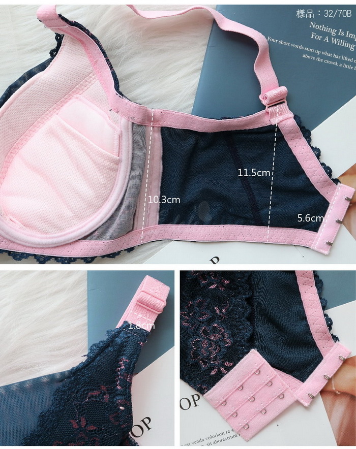 調整型系列【伊蓮米娜】- 蕾絲集中魔術內衣(深藍  B-D 70-95)