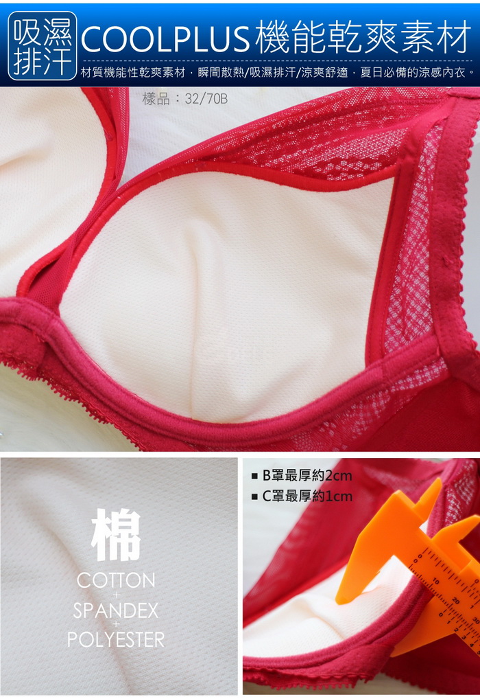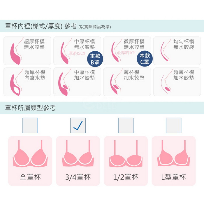 B罩為下厚上薄2CM內襯 ,C罩為均勻襯墊1CM