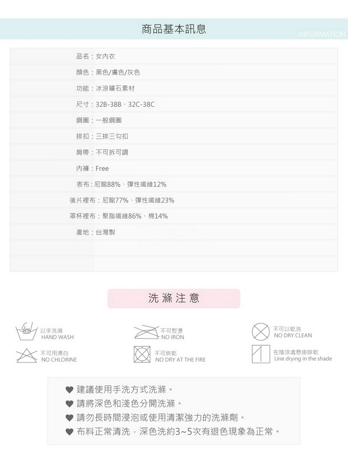 ◆冰礦紗:結合臺灣冰涼礦石,接觸肌膚沁涼透氣