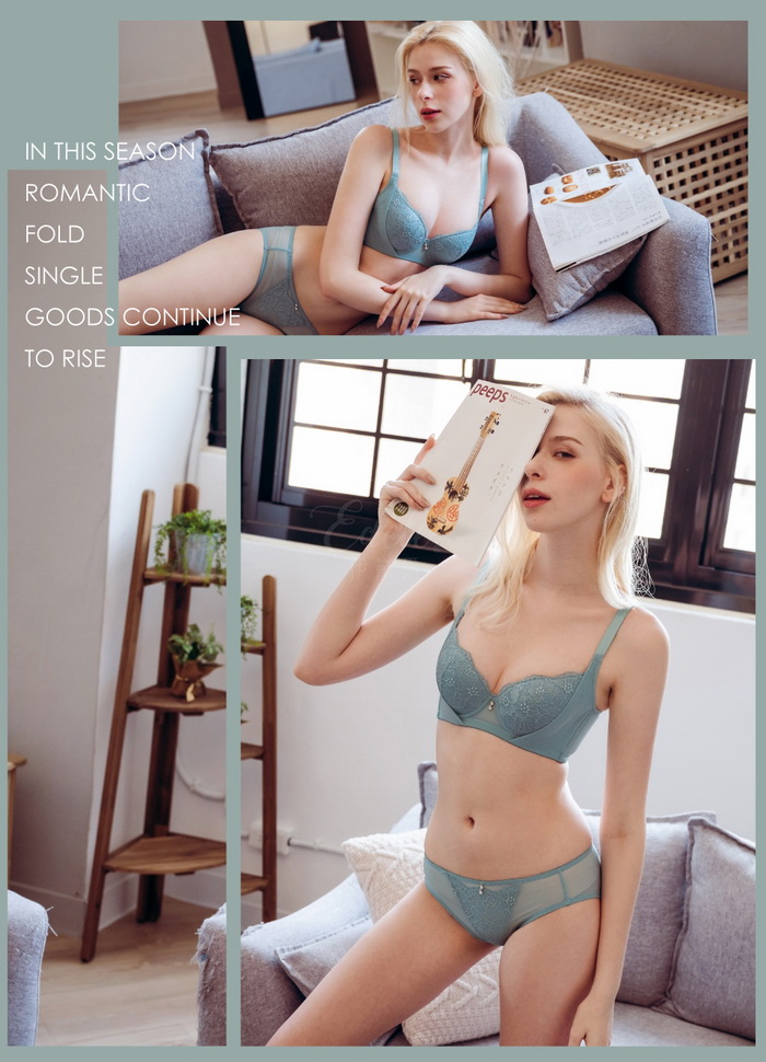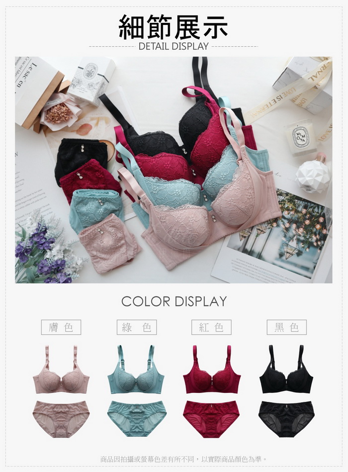 月牙包覆系列【凱絲羅莉】- 蕾絲集中深V內衣(綠色 A-D 70-90)