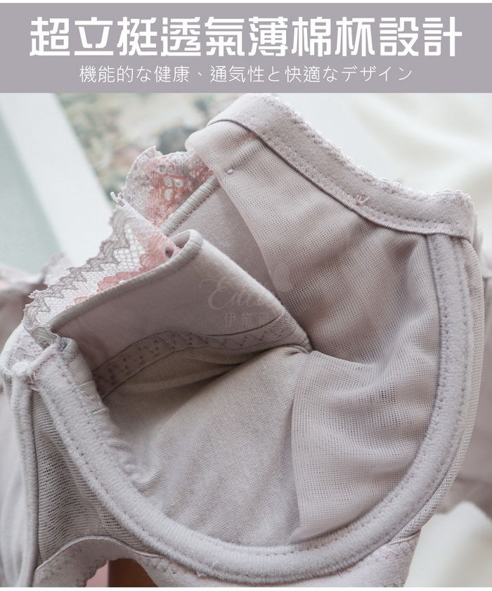 全罩型款式,舒適性、包覆性佳。使用華麗刺繡蕾絲,服貼胸型,性感不壓胸