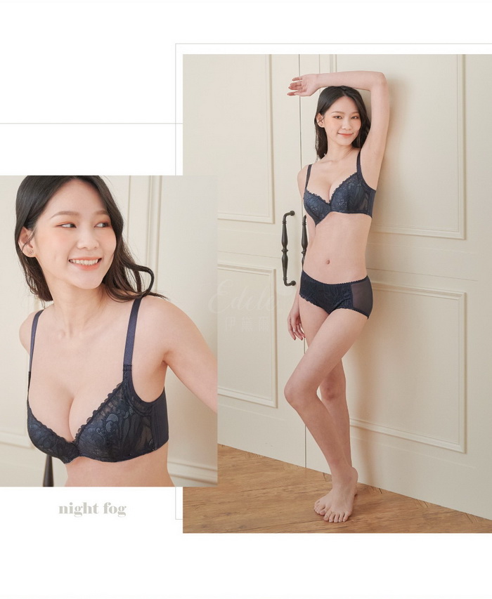 內衣【夜霧森林】蕾絲軟鋼圈竹炭紗內衣 B/C罩 (深藍) #2208
