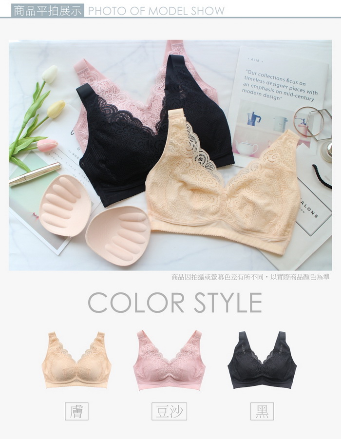 襯墊為可拆式手指型襯墊,完美掌托乳房,集中雙溝