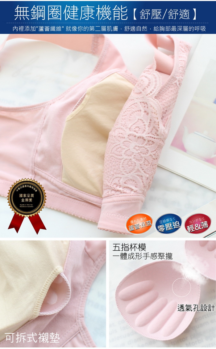三大特點:無鋼圈/蘆薈保濕纖維/鎖邊布加壓