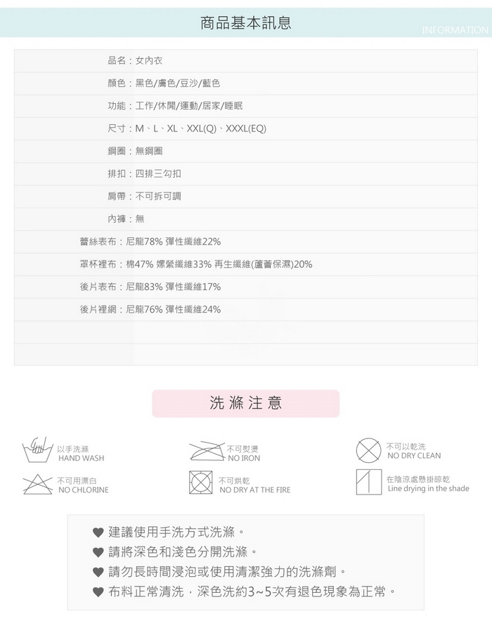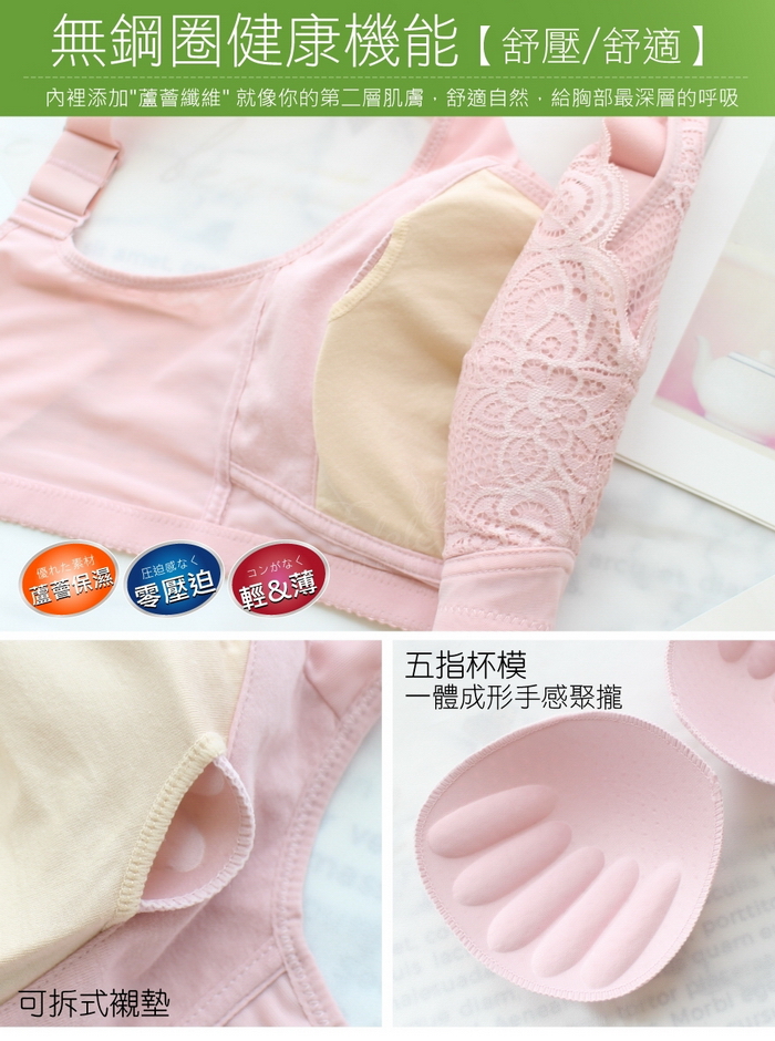 三大特點:無鋼圈/蘆薈保濕纖維/鎖邊布加壓