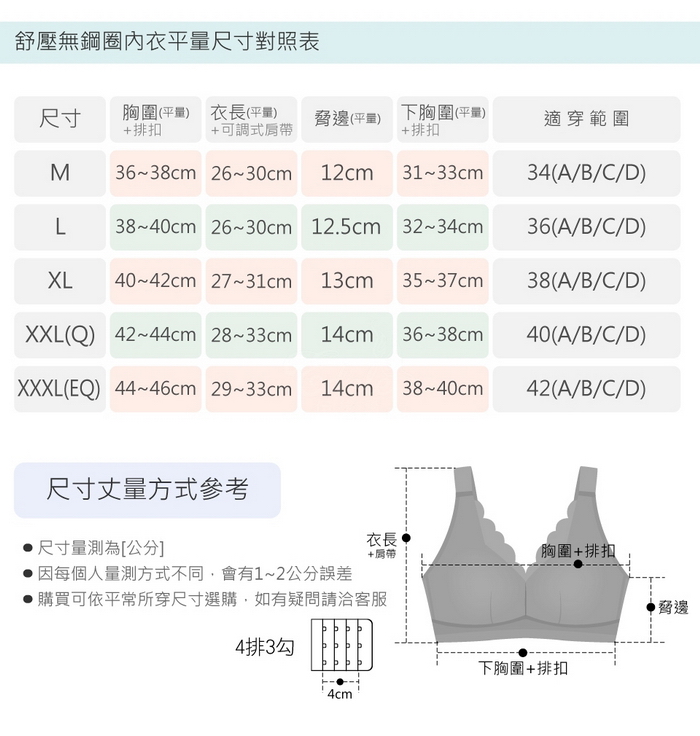 U型美背4排3扣,美化背部曲線,並加強內衣穩定度