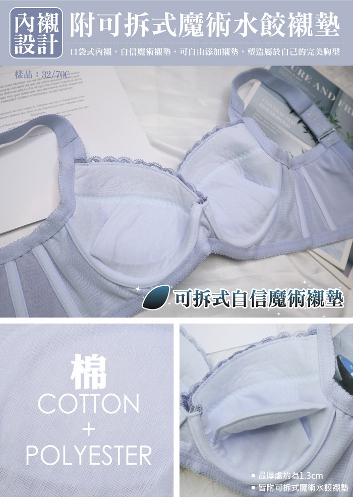 C-H罩杯都附有可拆式魔術水餃襯墊
