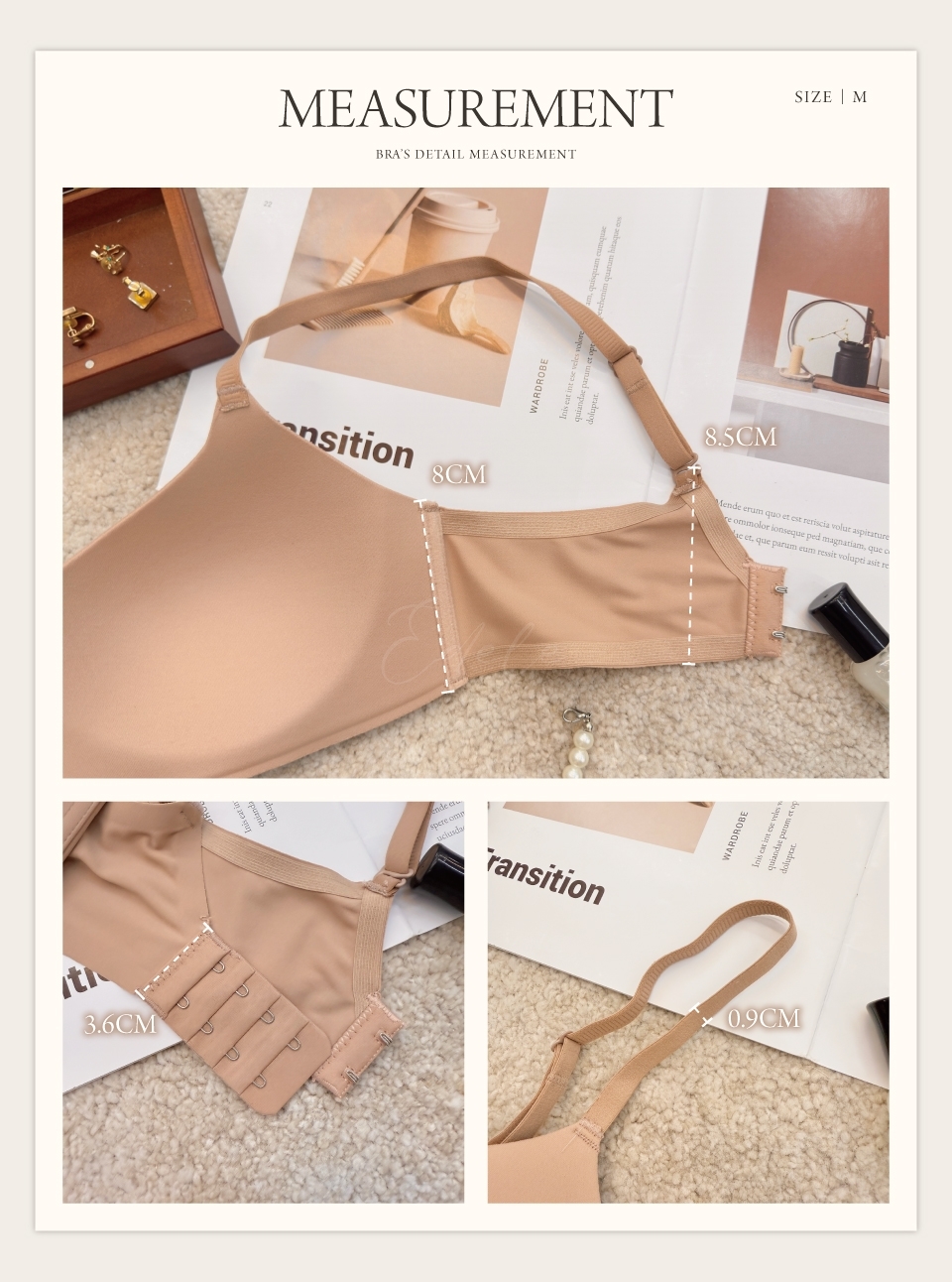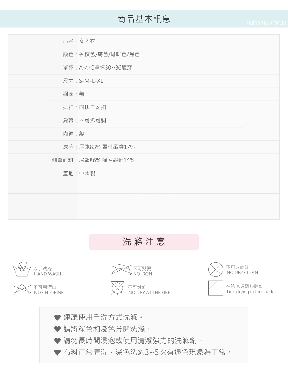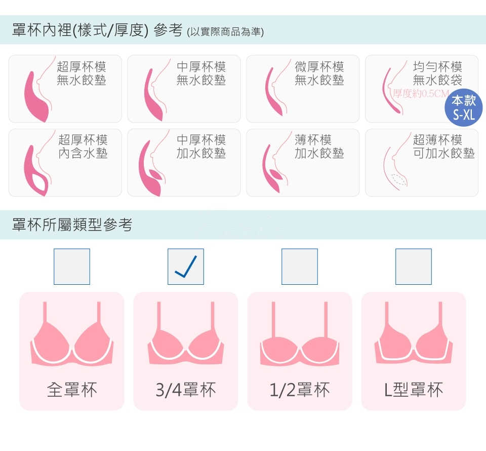 一片式3D立體杯型,符合人體胸型設計