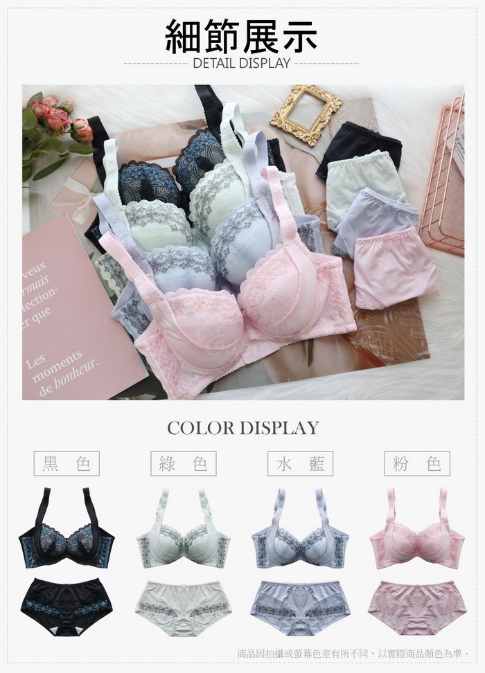 月牙提托系列【妮可諾拉】- HIDE美胸蕾絲調整型內衣(綠B-D70-95