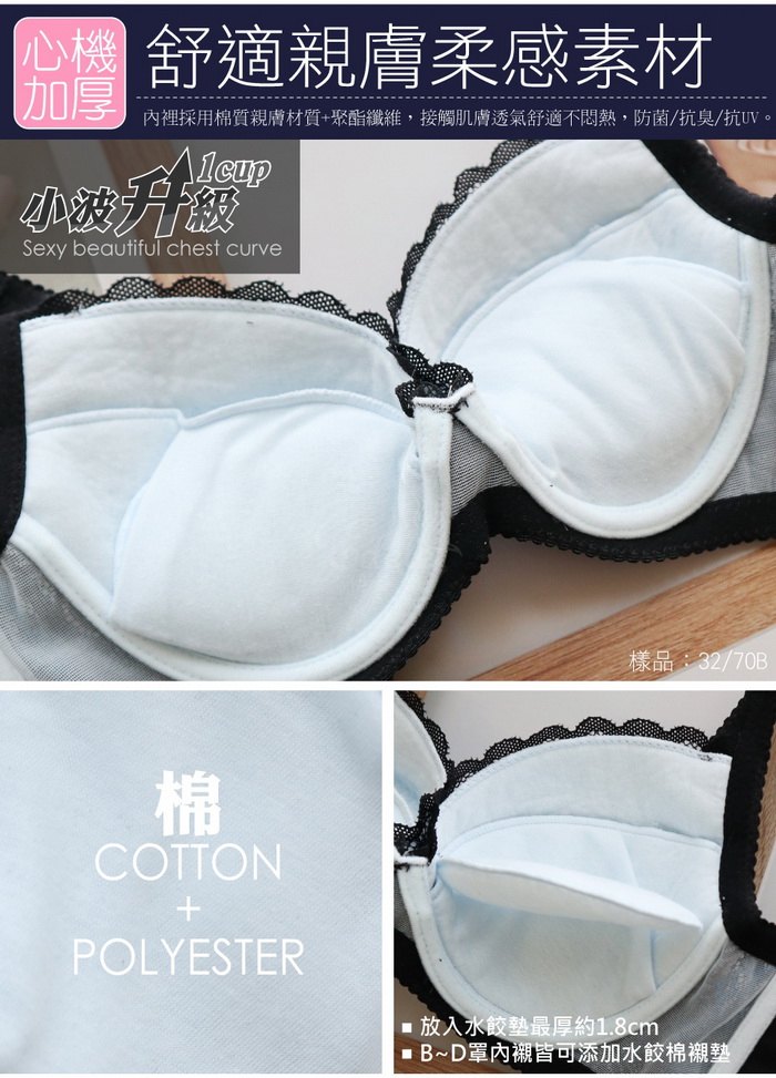 B-D罩杯都附有可拆式魔術水餃襯墊