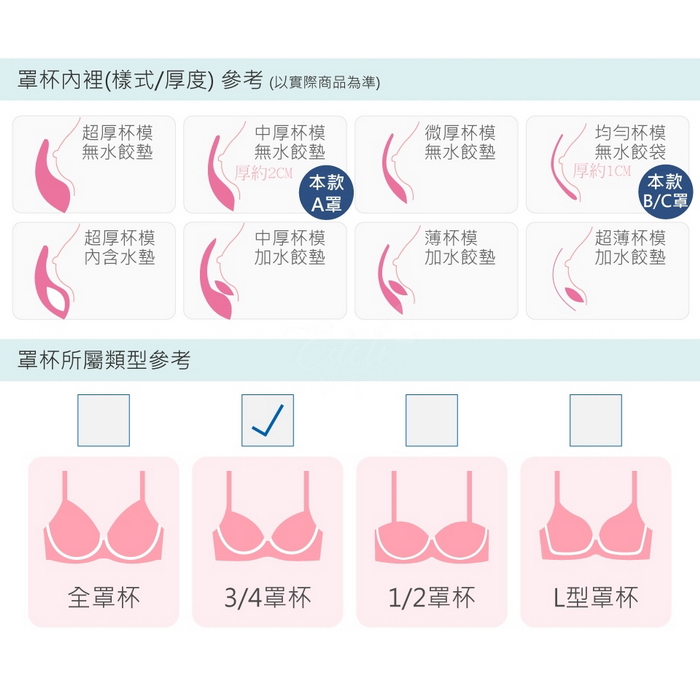 A罩杯內襯加厚設計,最厚處約2公分;